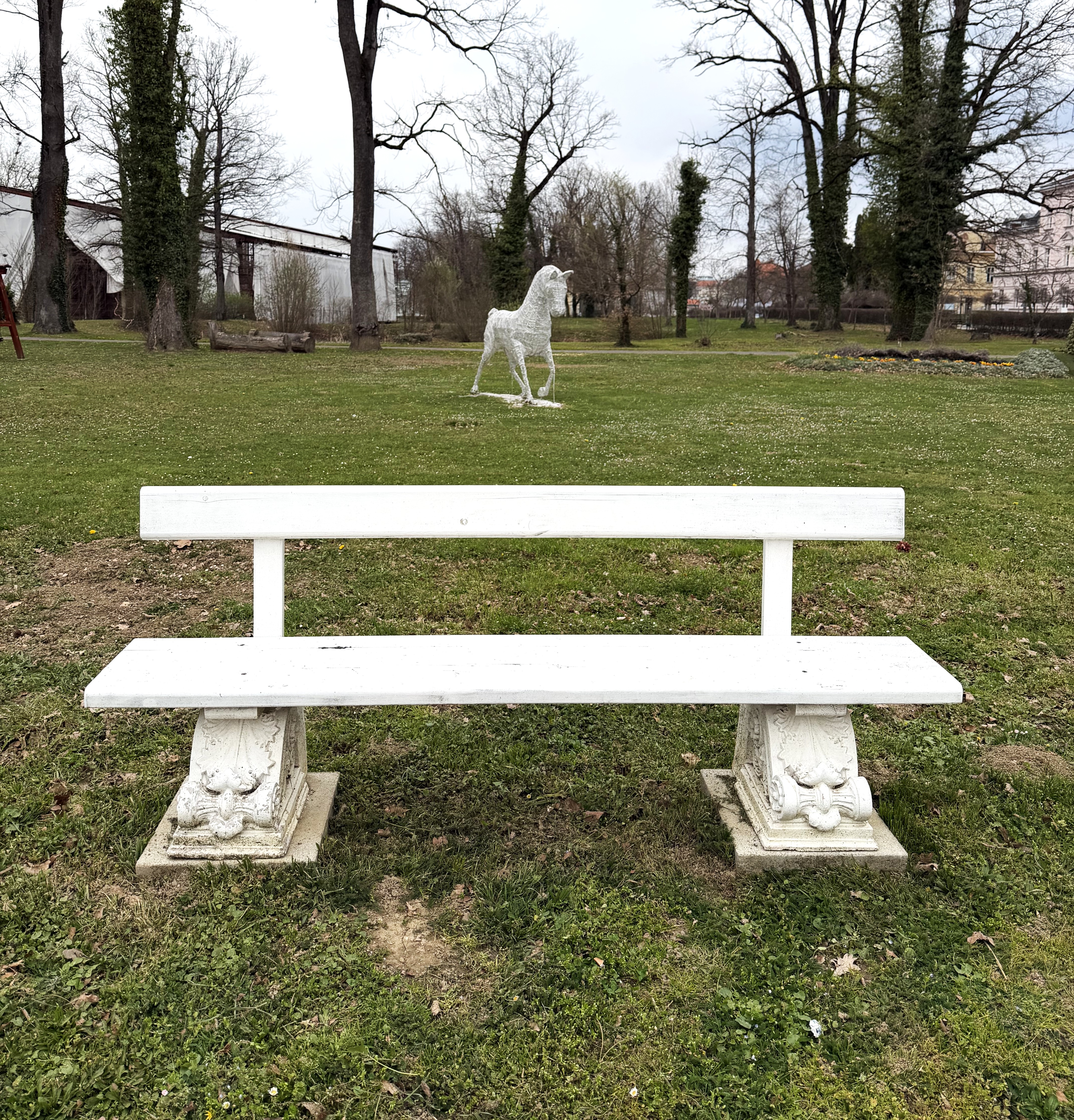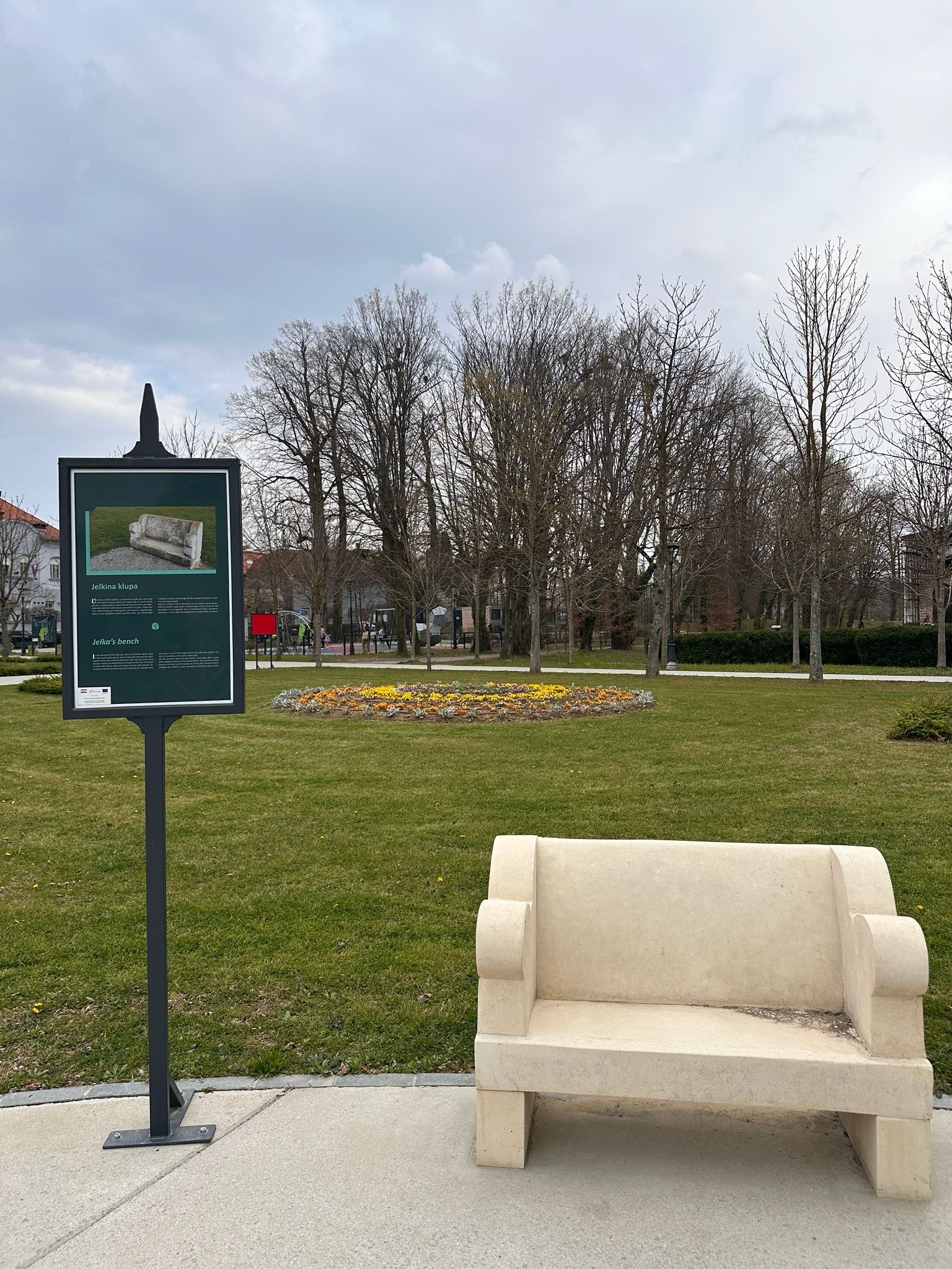 Klupa u perivoju izrađena s dekorativnim elementima izvorne Vile Zinke, kao primjer reinterpretacije arhitektonske baštine u javnom prostoru, foto: Emajstor